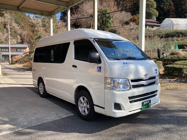 車イスのままご乗車いただける福祉型車両のタクシーです。お客様3名様までご乗車いただけます。 一般のタクシーとしてもご利用いただけます。お客様4名様までの小型車両になります。
